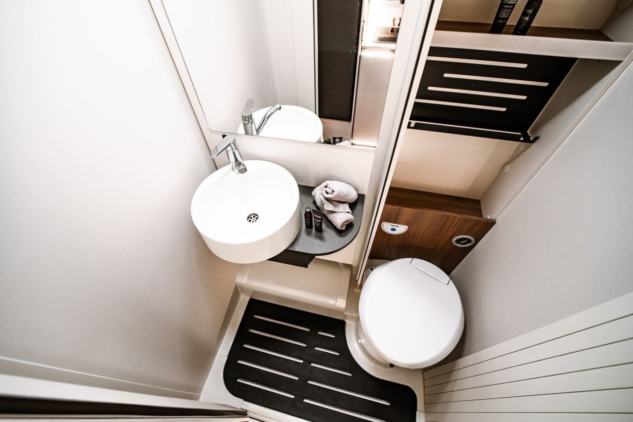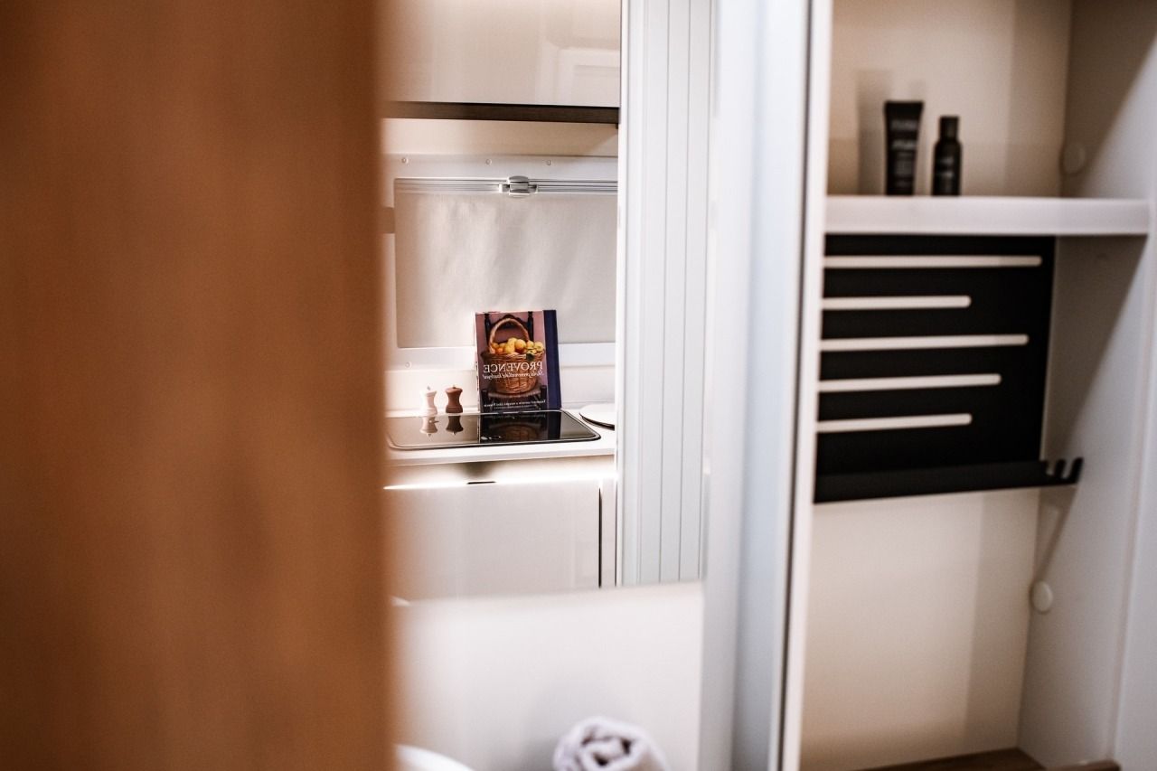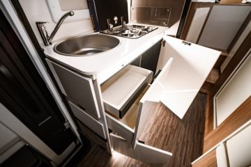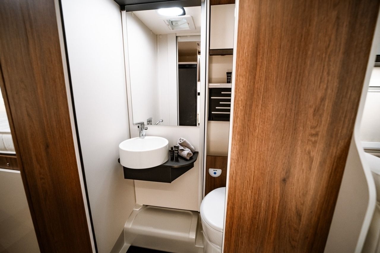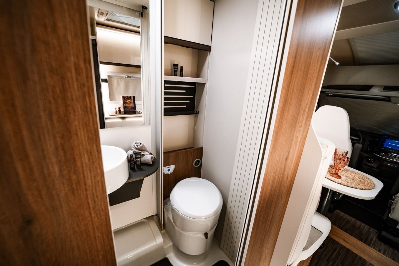 Interiér vozu nabízí jídelní kout ve tvaru L, přičemž stůl je pohyblivý, což zvyšuje variabilitu prostoru. Navíc lze jídelní kout přeměnit na lůžko pro jednu osobu.Prostor pro spaní