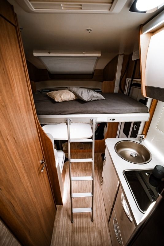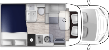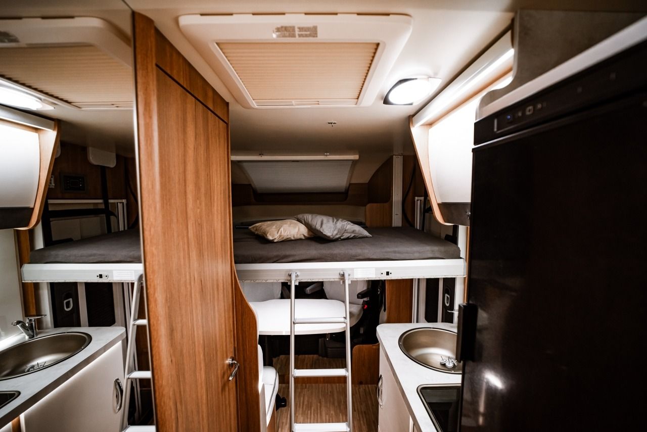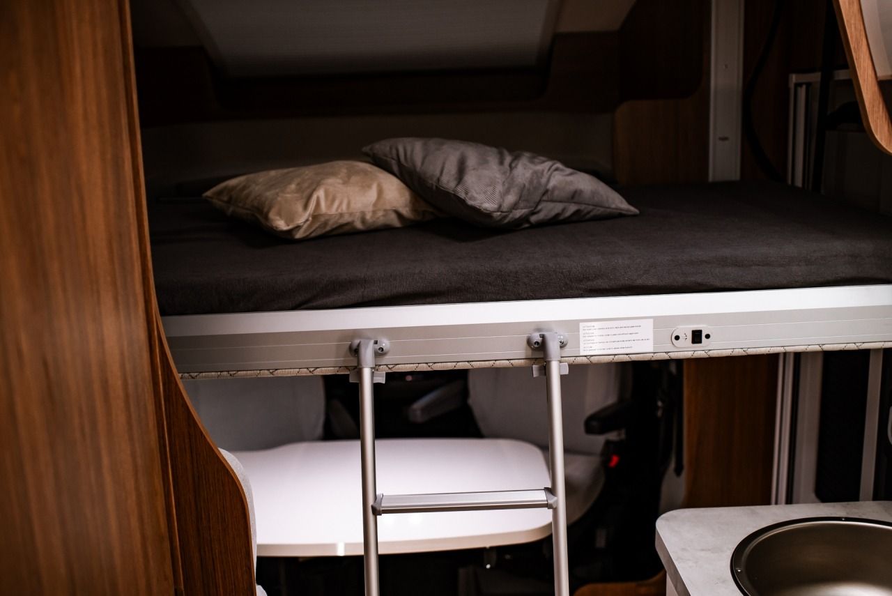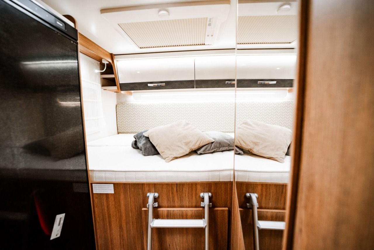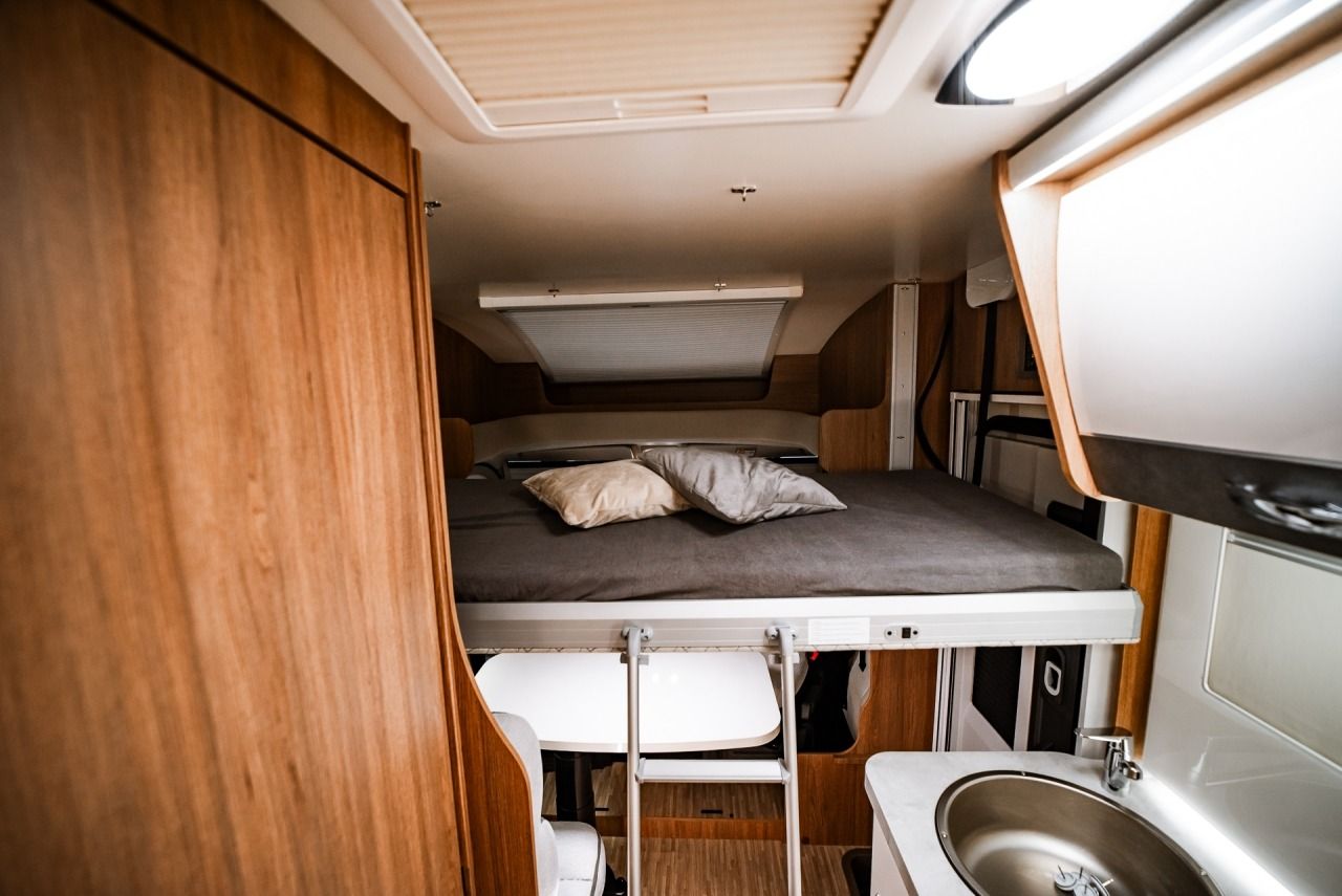 Trvalé ložní prostory zahrnují fixní příčnou postel o rozměru 216 × 130 cm (125 cm). Pod ní se nachází skříň s tyčí na zavěšení oblečení. Dále je k dispozici vyvýšené lůžko o rozměru 190 x 81 cm a v prostoru jídelního koutu lze vytvořit další lůžko o rozměru 208 x 95 cm (78 cm).