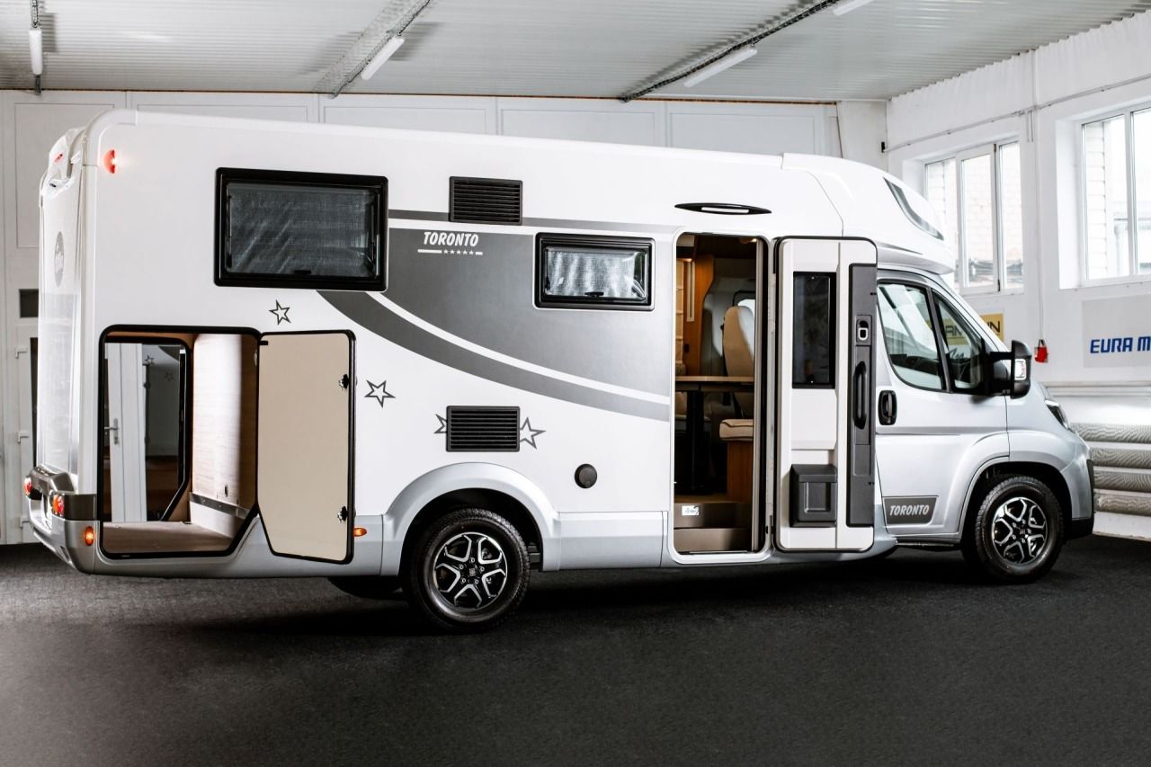 Výborný poměr mezi kompaktností a obytným komfortem – díky délce cca 6,99 m (širší rozměry) poskytuje TORONTO dostatek prostoru při zachování ovladatelnosti.