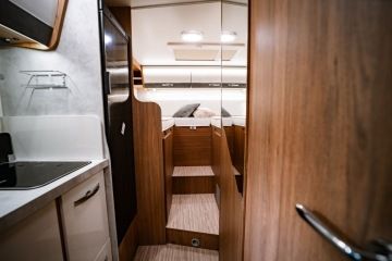 Volitelně lze dokoupit 9" dotykové rádio Pioneer, zpětnou kameru, solární panel 200 W s MPPT regulátorem a plissé zatemnění.